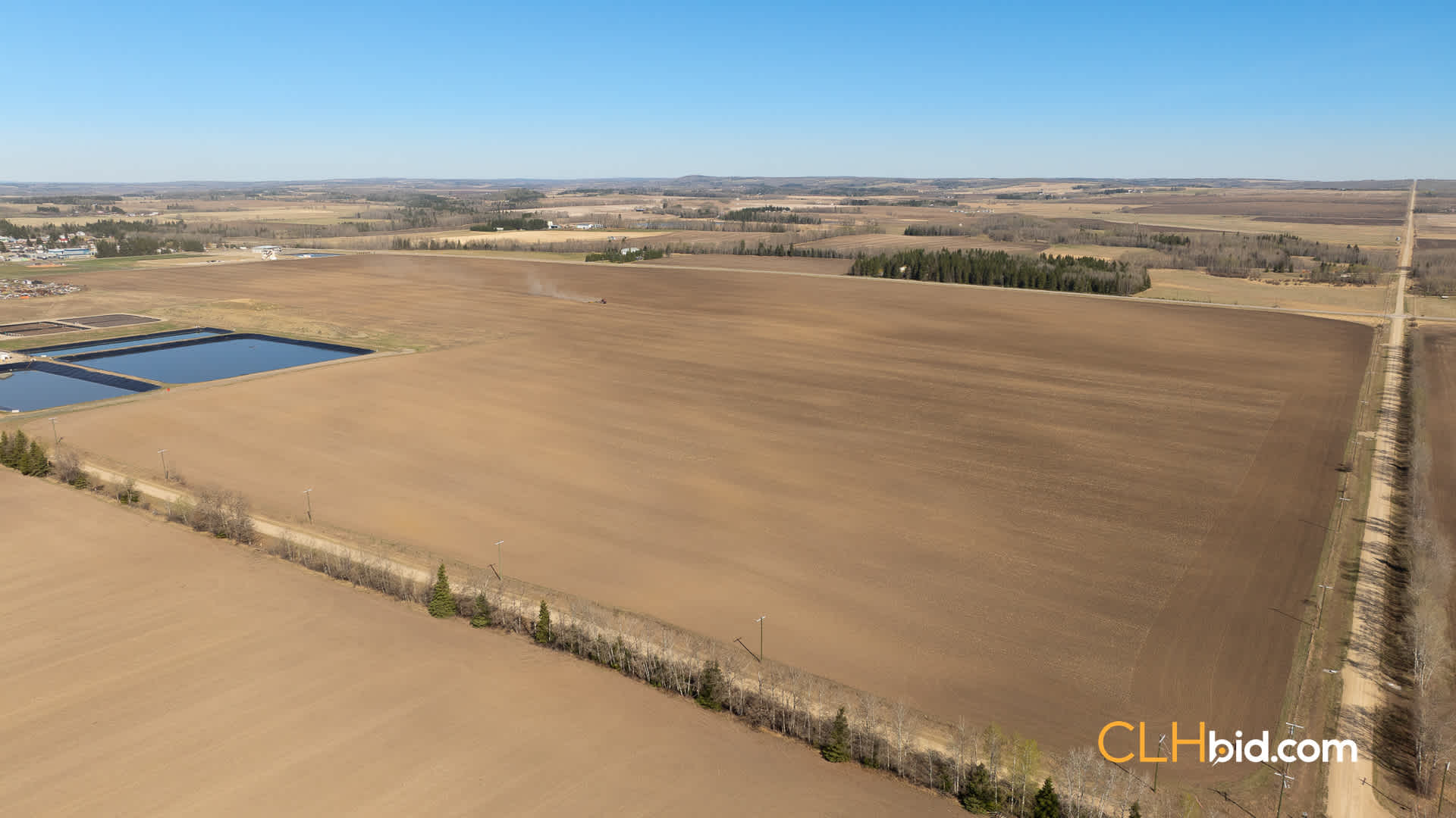 Check out this quarter on the east side of the Hamlet of Leslieville, Alberta. With a total of 139 acres, there are approximately 130 acres of wide-open farmland boasting supreme Class 3 soil according to the Canada Land Inventory map. The stockpiles of topsoil and clay that are situated on the 9 acres north of the lagoons go with the land. The new buyer may want approval for a new approach from the south to make it easier to haul out the topsoil and clay rather than crossing the field to the east.